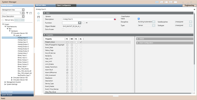 the respective Analog Input object. For this you must navigate to the Properties expander in Object Configurator.