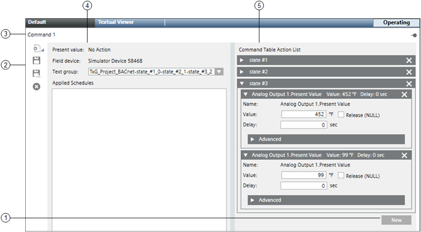 5 | Command Table Action List | Displays command tables with additional detail when you select an entry row. The Move Up and Move Down arrows allow you to re-order entries within a command table. Further detail can be displayed by clicking the Advanced button. |