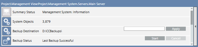• The backup status displays In Progress; Component for the component currently backed up; Progress displays the backup completion percentage. When the backup is completed, the status changes to Last Backup Successful and indicates the backup date. The project is available on the server at the given destination path.