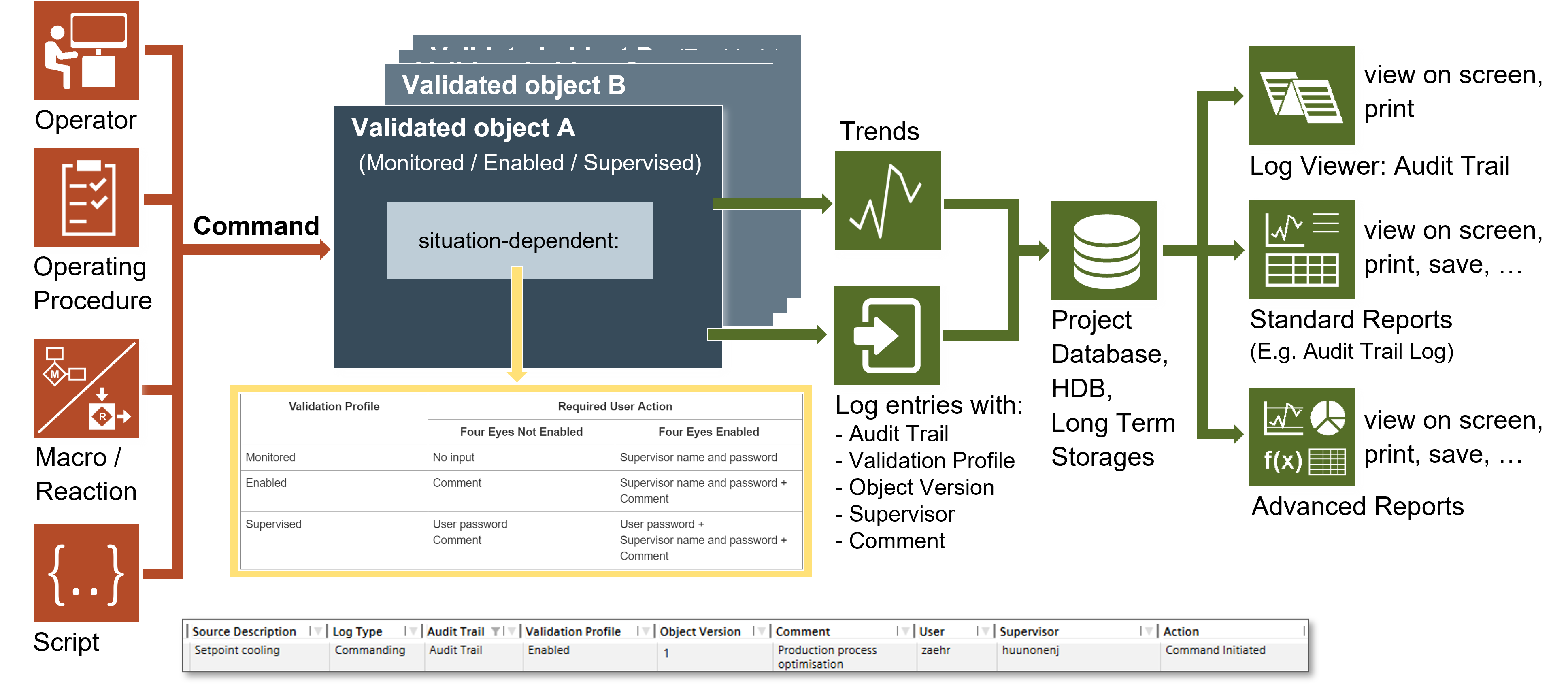 Once you accept the entries to the Validation Required dialog box, the system records the changes, which you can review in the Log Viewer. The log serves as an audit trail record to achieve regulatory compliance for validation.