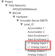 Highlighted objects in System Browser have a curved arrow next to them. The arrows indicate existing and resolved data points referenced in a graphic when Graphics Editor is in Runtime mode.