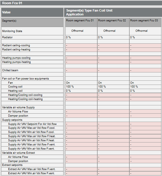 Example with three fan coil unit segments: