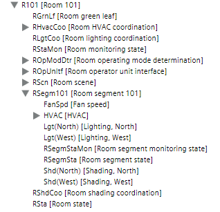 - Select Logical > [Hierarchy name] > [Hierarchy x‒n] > [Room] > [Room segment] > Object type.