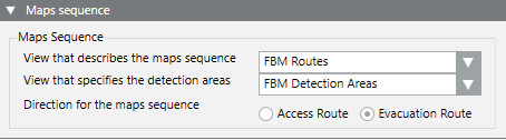NOTE: If you do not require access/evacuation routes across multiple maps, you do not need to configure these views, and the field View that describes maps sequence must be left blank. When you leave this field empty, you will get maps from all graphics that contain the previously selected objects.