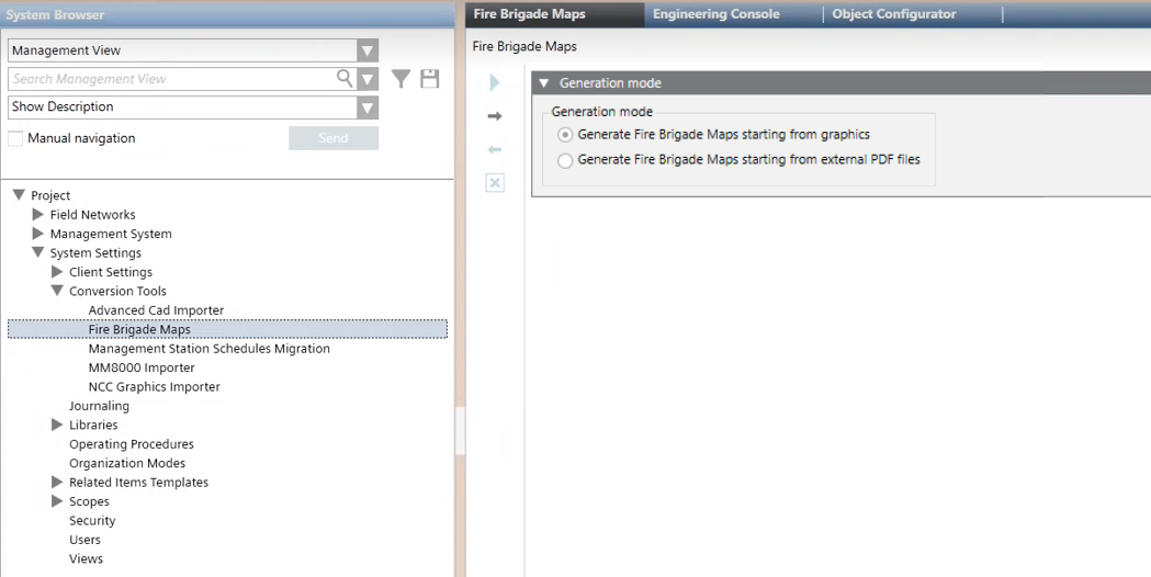 - In System Browser, select Project > System Settings > Conversion Tools > Fire Brigade Maps.