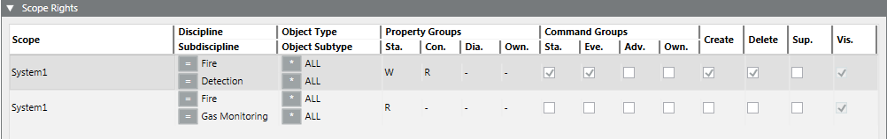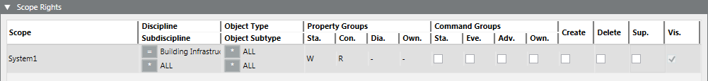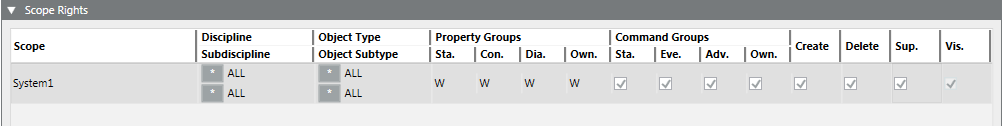 - Select the Command Groups, Create, Delete, Supervise and Vis. check boxes.