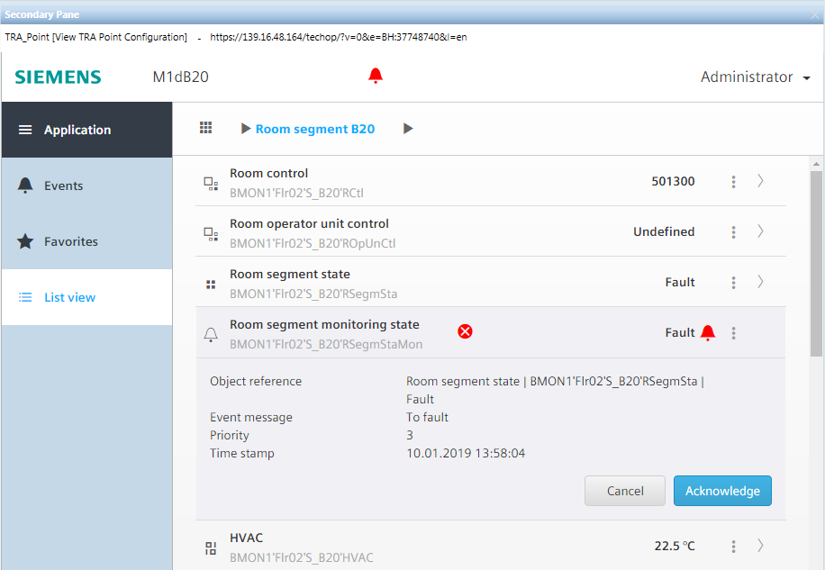 1. Select Logical > [Hierarchy name] > [Room name] > [Room segment]> [HVAC] > Fan.
