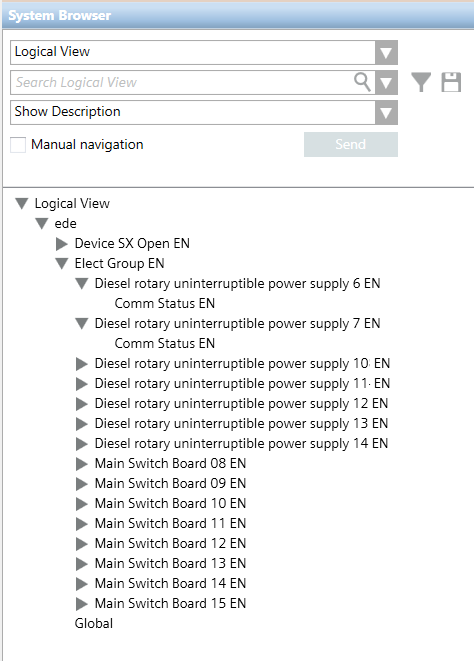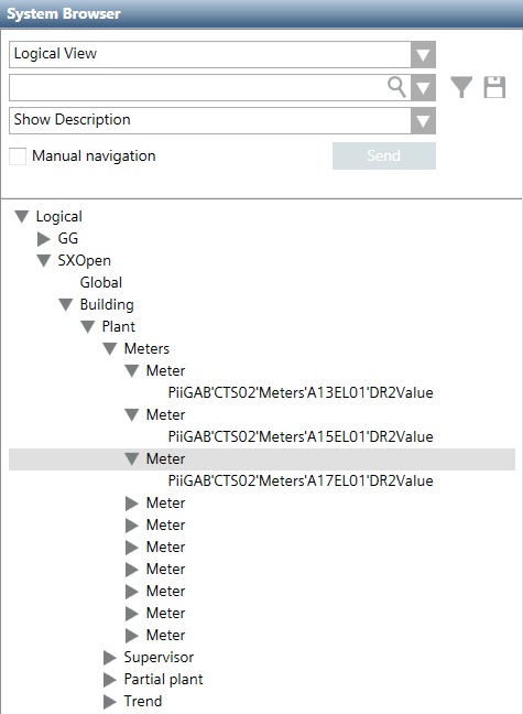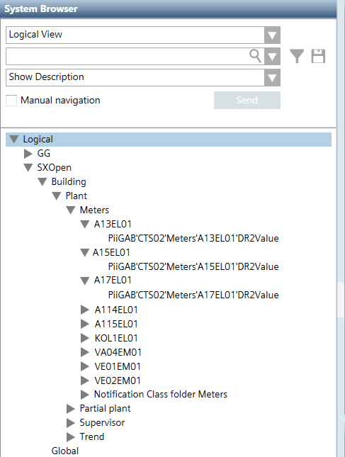In System Browser, the descriptive text is displayed on the corresponding hierarchy level.