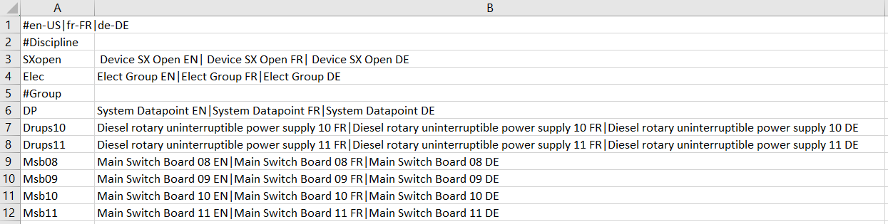 - In the EDE main file, to recognize the inline texts in a column, for example, Off, On, Stage 1, Stage 2;