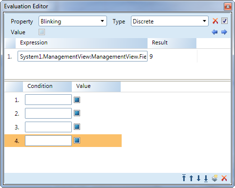 Display a range or threshold, when met by the expression result, applies the associated Value to the property evaluation.