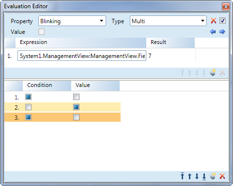 Associates one check box per expression, indicating whether an expression is true, false, or unspecified. If a condition is true, the associated Value is applied from left (top) to right (bottom) expression. One check box per expression displays for each condition.