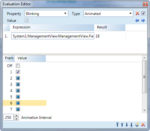 The Evaluation Editor view allows you to create animated graphics by configuring and applying expressions and substitutions to the properties of an element and associated data point properties.