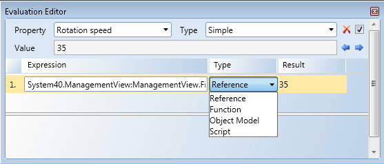 Empty all the fields in the Evaluation Editor, except for the Property field. The Type field is reset to Simple. Use this if you want to recreate an evaluation.