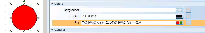 • TxG_HVAC_Alarm_01.2 = This references the Alarm state, which is represented by the Color red.