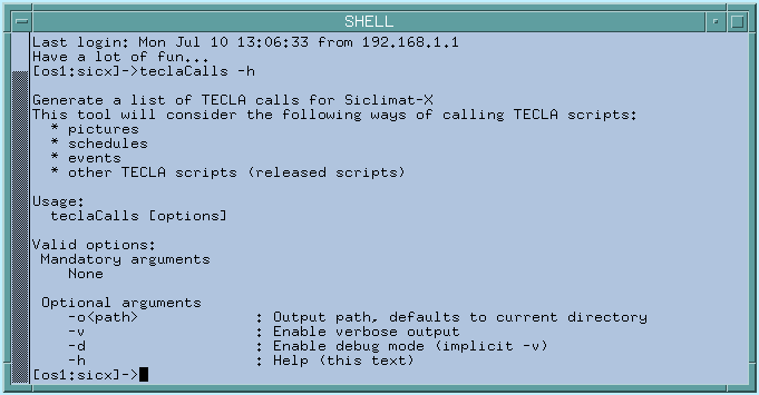 - The list of TECLA calls done in Siclimat-X is created in the current working directory or optional given output directory with the filename scriptCalls.csv.