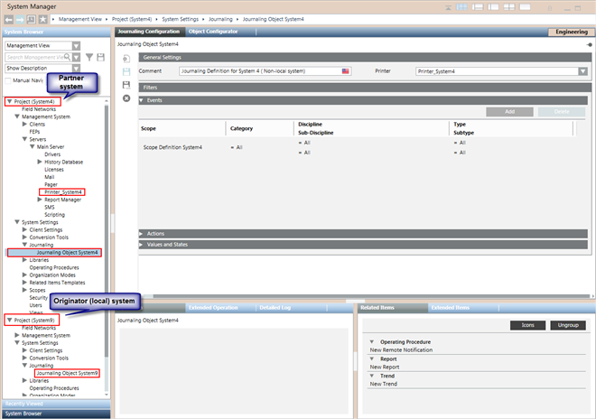 - You are logged on to a Server, Client or FEP station of System A, and from there you want to configure journaling printouts for System B.