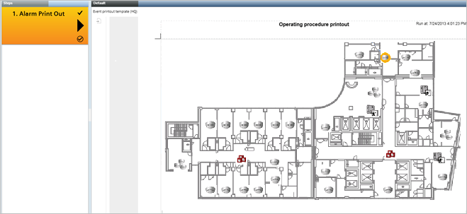 The preconfigured alarm report displays in the Default tab. When you select this step for the first time, a new report is generated. On subsequent selection, the same report is reloaded.