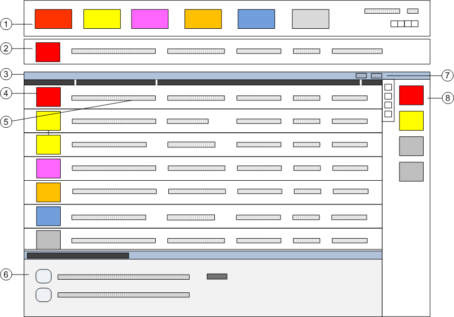 1 | Summary bar | Contains a set of event lamps that provide an overview of the events in the system. For more information, see Overview. |