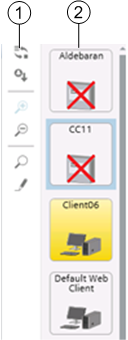 The Site Viewer presents control panels and system components as graphic symbols that provide a quick status summary. In fact, the graphic symbols show the category color of the most important event, and blink when an event acknowledgement is required. In addition, a red X sign on the symbol represents a communication fault or disconnection from the control panel or system component. A toolbar displays on the left-hand side and provides for filtering, sorting, and grouping commands. You can click a symbol to operate it with the toolbar commands and double-click it to select it and display its information in the work area.