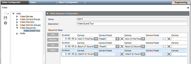 - In the Video Configurator tab, select VMS > Video Sequences > [sequence].