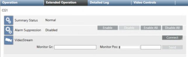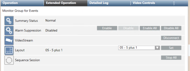 When you select a camera group in System Browser, properties and commands for that camera group display in the Operation and Extended Operation tabs.