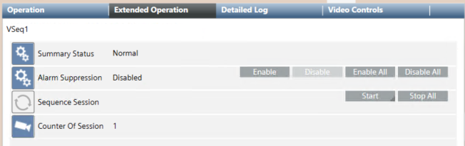 Sequence Session | Stop All | Stops all running sequences on the selected monitor or monitor group. | This command is equivalent to clicking