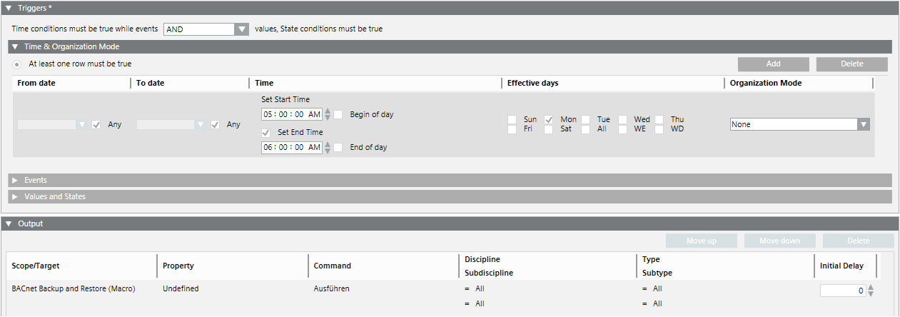 You can create an automated backup of BACnet automation station data using the functions Macro and Reaction Editor.