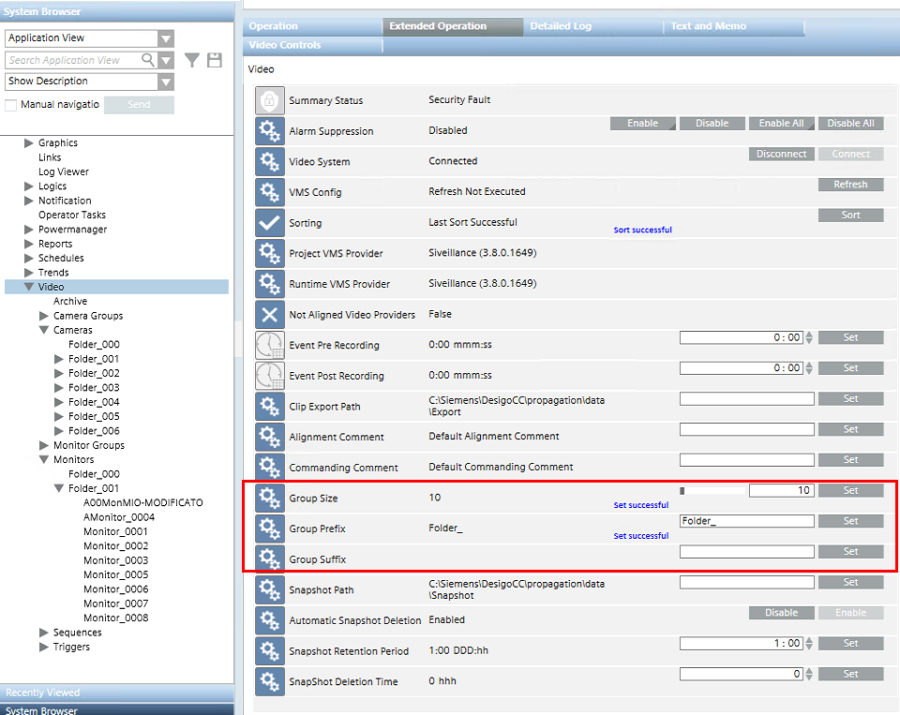 Video objects (cameras, monitors, triggers, sequences, camera groups, and monitor groups ) can be shown grouped in System Browser to facilitate navigation.