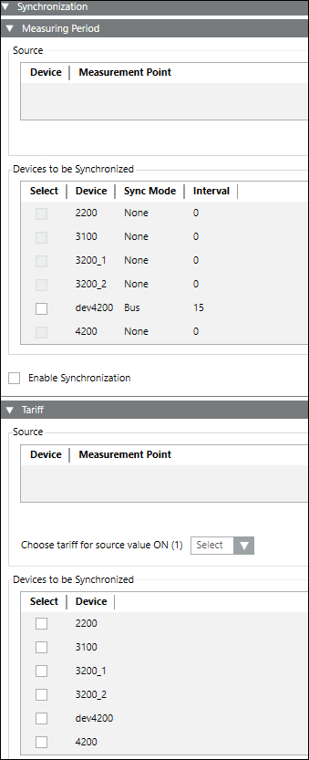 - Devices to be synchronized: Allows you to select the target devices for tariff period synchronization.