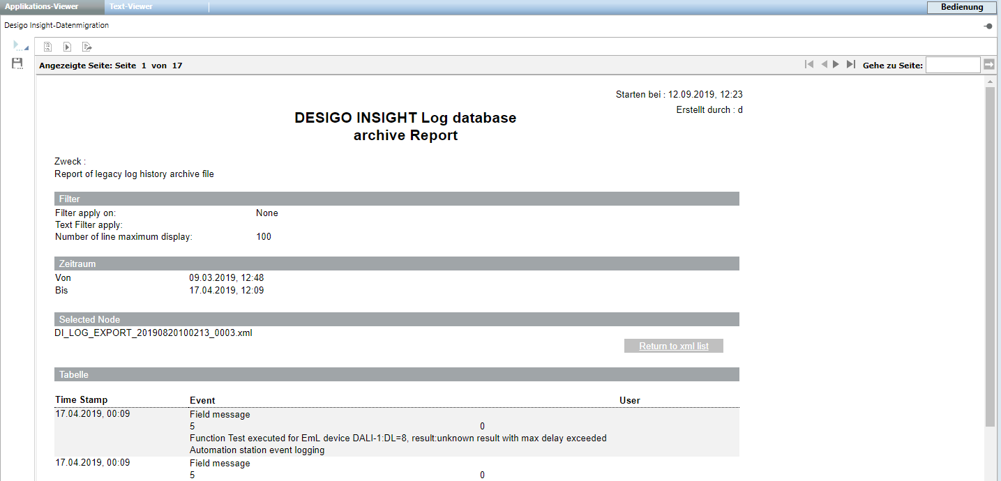 (Optional) Click Back to xml list, if you want to execute another report.