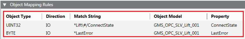 - In the Object Mapping Rules expander, specify the mapping of OPC items.