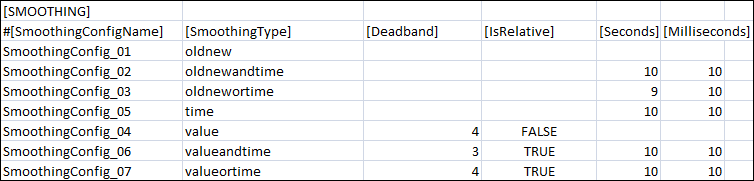 Smoothing | Name of the smoothing configuration to be associated with the point. This value is specified from the [SMOOTHING] section. |