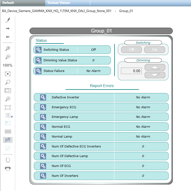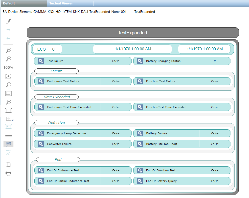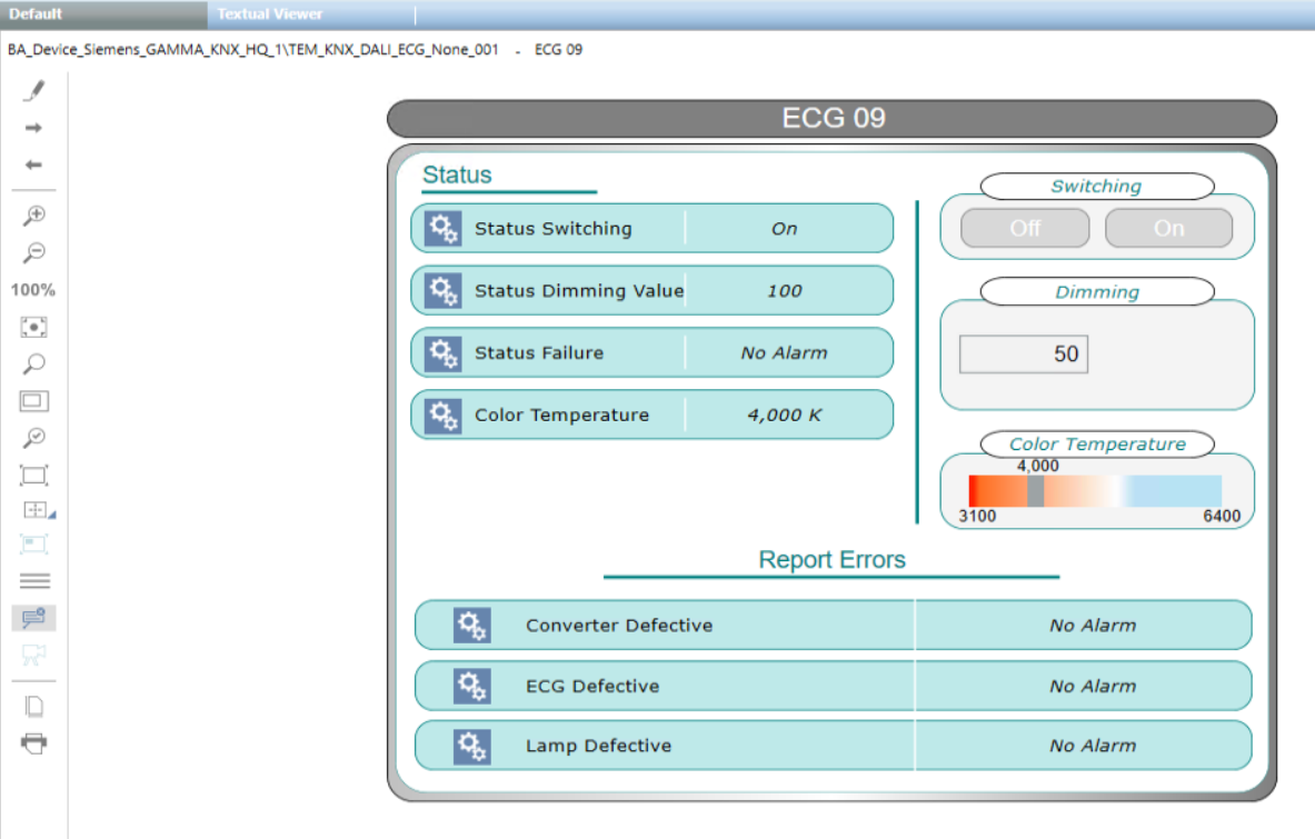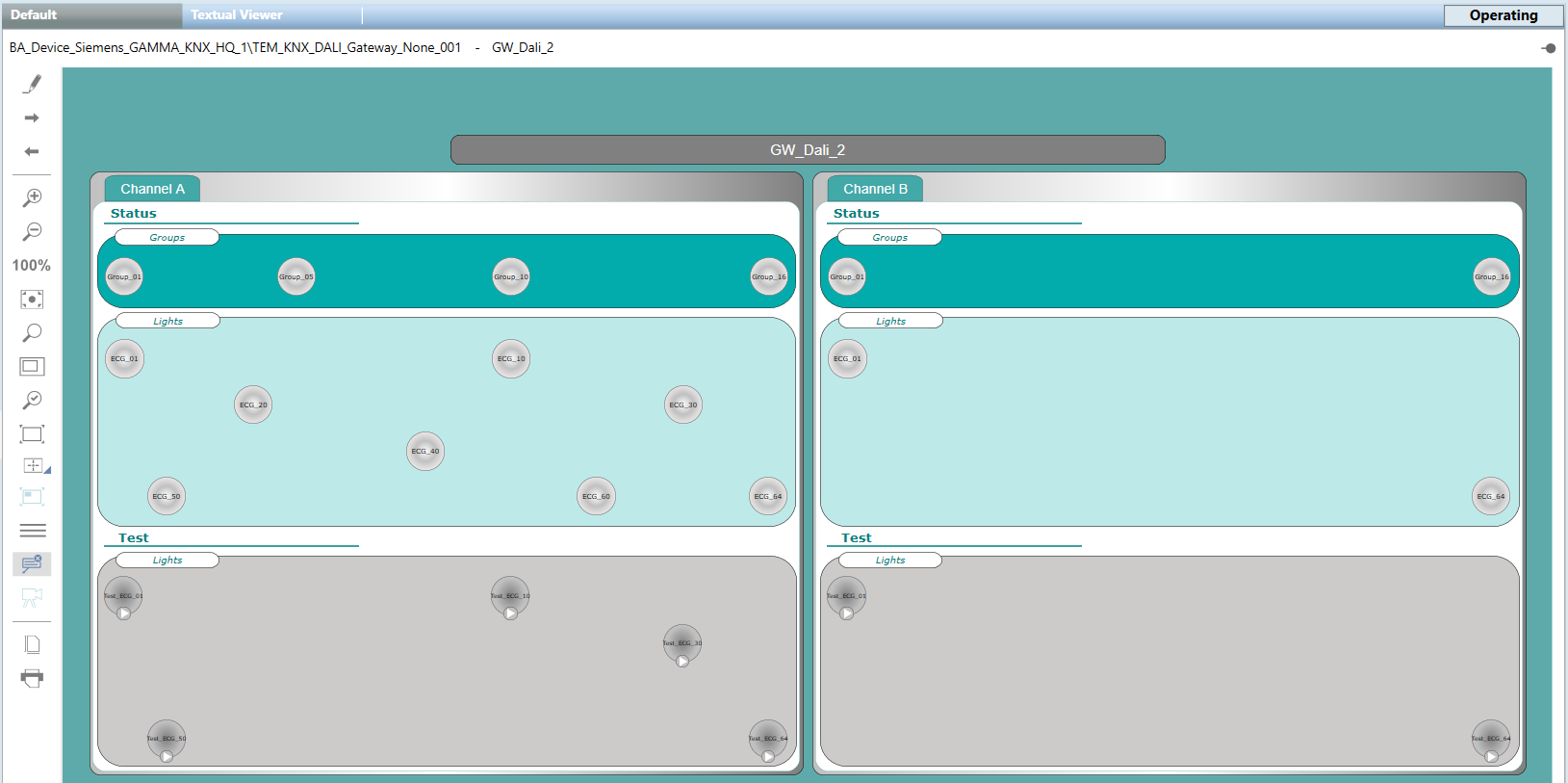 In Engineering mode, this is the graphic template for the DALI ECG lamp in test.