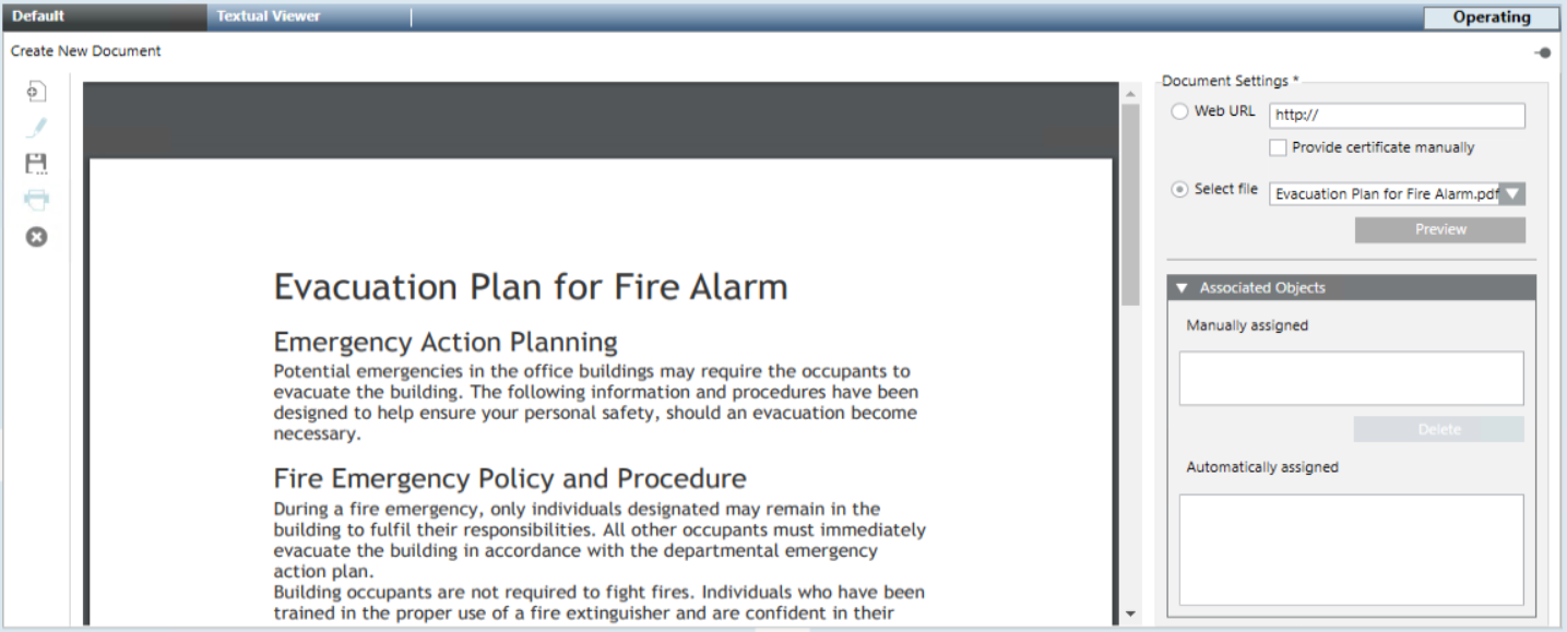 • You want to configure a read-only document in Desigo CC for the operator to consult or print. For background information, see Documents Workspace.