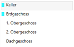 | Displays the floor listed for navigation in Desigo CC that is generated from the BIM data. A corresponding color code is displayed when using room grouping. NOTE: The displayed floor names can differ from the system data. |