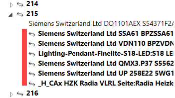 Red highlighted objects associate a data point and a BIM object White objects are only available as data points, but not associated with a BIM object.
