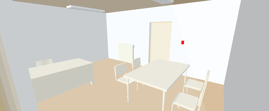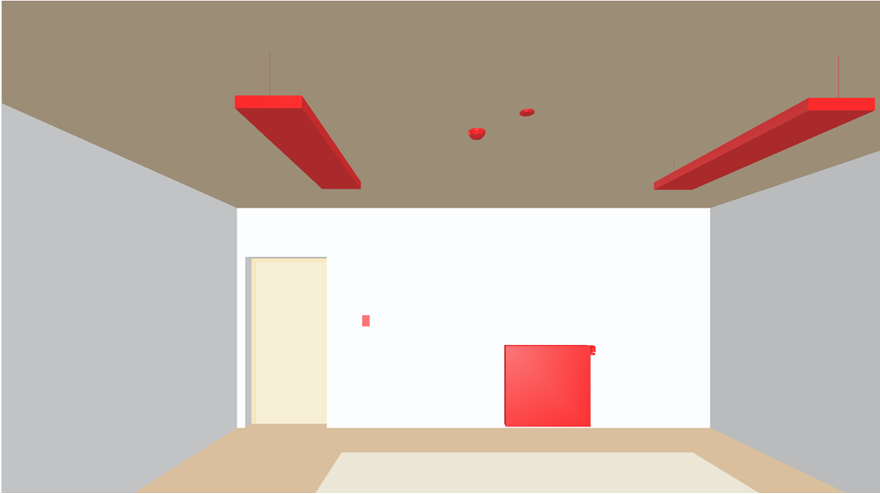 - The selected room opens. The alarm is displayed on the floor per the alarm category (colors in the alarm overview).