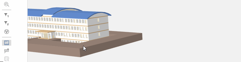 - At a perspective some distance from the building, the camera moves around the building, in other words, the building appears to revolve on its own axis. The center of the rotation is the point that you selected with the right mouse button.