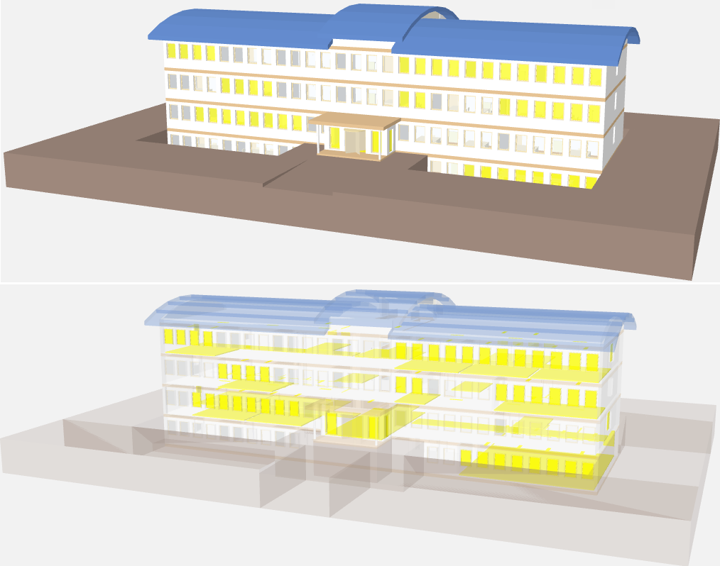 Additional information on building objects, associated with the system, are displayed with the current data in a tooltip.
