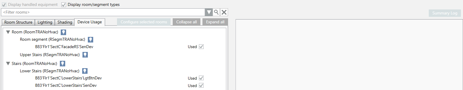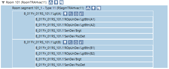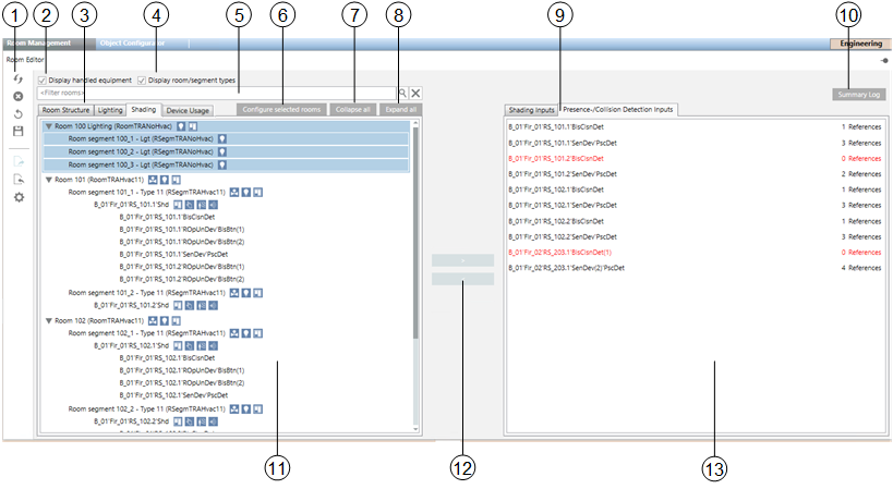 Detailed information is displayed in the room information list depending on the control type, i.e. HVAC, lighting, or shading. Double-click to display the corresponding references in the room information list.