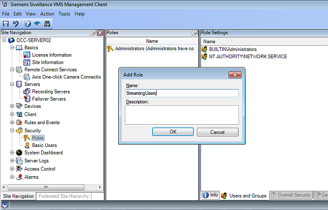 3 – Associate All Desigo CC Windows Users to the StreamingUsers Role in VMS