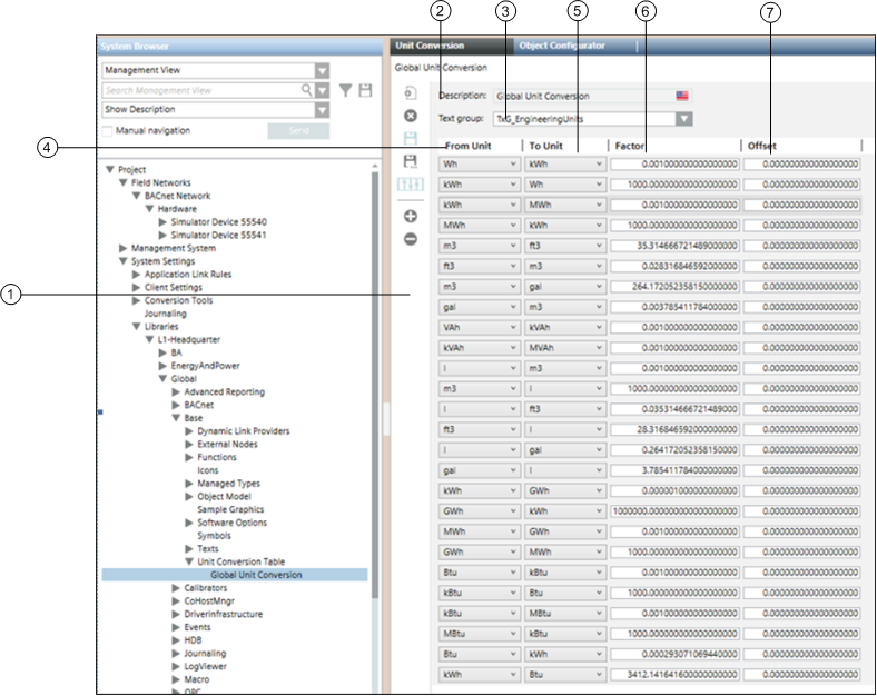 Selecting the Unit Conversion folder displays the unit conversion table that allows you to convert values stored in a certain unit of measurement to a different unit.