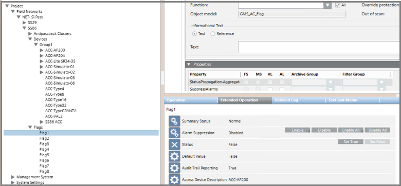 NOTE: In the System Browser tree, the flags are not located underneath their respective access controllers (ACCs). Instead they are all grouped together under the Flags folder, directly underneath the SiPass server node.