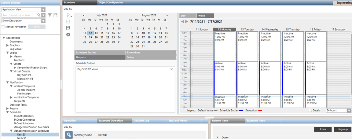 - Select Schedules > Management Station Schedules in the System browser and then create two schedulers namely, Day_SS and NightSS. (For more information, refer to Management Scheduler topic) The following image displays the Day_SS options.