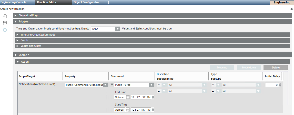 - Select Purge [Commands.Purge.Request.ExecutePurge] from the Property drop-down list.
