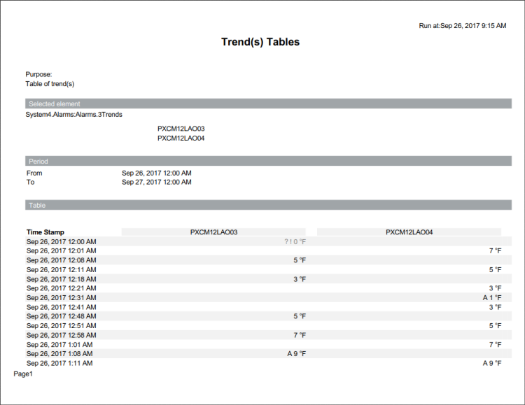This report is designed to show values of multiple trended objects compared over a range of time.