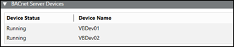 Selecting BACnet Server in System Browser allows you to view virtual device status and name.