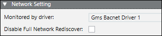 Monitored by driver | Where you assign a BACnet driver to the network |