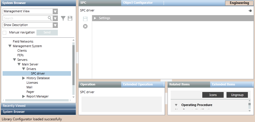 The status of a newly created driver is Stopped. To be able to import the SPC panel configuration files, the driver must be started with either Start or Start Conf...