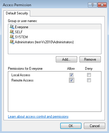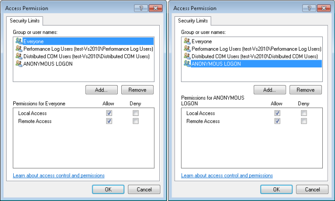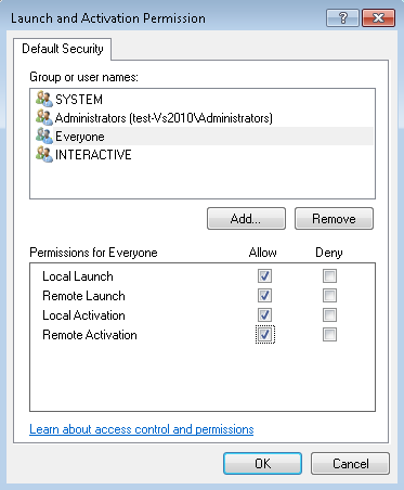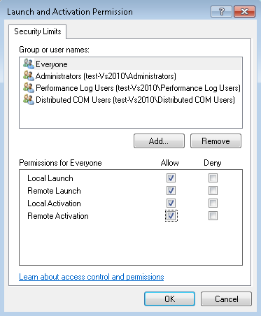 - In the Launch and Activation Permission dialog box, do the following: